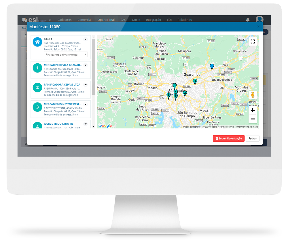 Reordenamento instantâneo de paradas diante de imprevistos no trânsito.